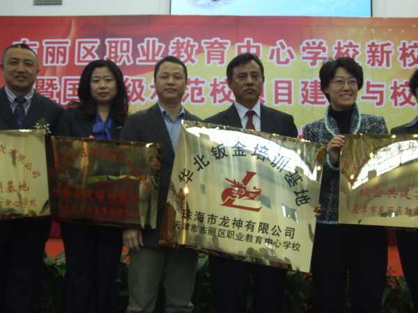 最后,我司蘇總為天津東麗區(qū)職業(yè)教育中心學(xué)校辦發(fā)“華東鈑金培訓(xùn)基地”牌匾。