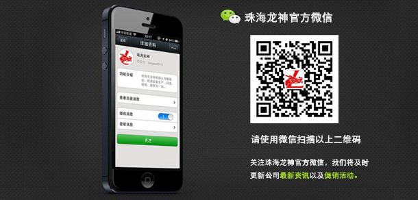 珠海龍神官方微信敬請關(guān)注! 2013-09-18 16695 珠海市龍神有限公司公共微信號已申請成功,請大家多多關(guān)注!掃描二維碼,也可直接搜索公眾微信號“珠海龍神”,我們將不定期發(fā)布公司最新資訊。您也可以發(fā)消息和我們進行互動。查看歷史消息收看您錯過的動態(tài)新聞,讓您第一手掌握最新動態(tài)。