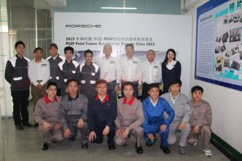 2013年特邀國外專家赴北京車爵士演示車縫泡膠條的使用 2013-04-08 12109 本司訊:2013年4月北京晴空萬里,龍神公司特邀英國專家一行五人,來到了北京車爵士進行汽車噴涂遮蔽技術交流。首先公司一行了解車爵士的汽車噴涂情況及詢問了使用的遮蔽工具情況。隨后英國專家針對在汽車噴漆時難噴涂的車門縫隙、玻璃死角等地方的專業(yè)遮蔽工具的演示。車縫泡沫膠:用于車身所有縫隙的遮蔽,有效隔離及遮蔽漆霧噴入車縫里。