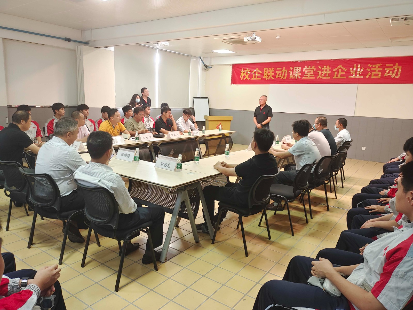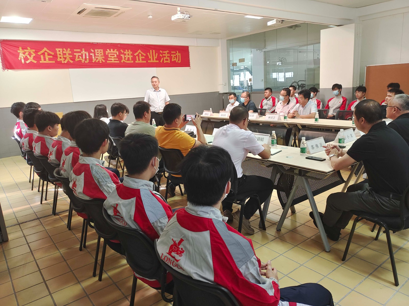本次活動地點為珠海市龍神有限公司培訓(xùn)部,出席活動的領(lǐng)導(dǎo)和嘉賓有珠海市龍神有限公司彭小龍董事長、蘇佛足總經(jīng)理、我校梁柏健校長、劉春龍副校長、實訓(xùn)與對外交流處副主任余穎濤,以及龍神公司培訓(xùn)老師陳嘉深、張冬冬、黃偉聰,職教橋?qū)<尹S濤、詹曉婷,我校汽車專業(yè)部部長石也言、衛(wèi)紅軍老師、趙燦明老師、溫柳文老師、戴述文老師及20車身班全體同學(xué)。